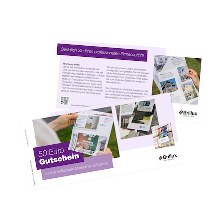 Reklama jest skuteczna: Zyskaj zniżkę 200 PLN na różnorodne usługi marketingowe firmy Brillux. Niezależnie od tego, czy chodzi o prezentację zewnętrzną firmy, ukierunkowany kontakt z klientami, czy też marketing specjalnych usług - Brillux oferuje indywidualne wsparcie. W ofercie znajdują się drukowane materiały reklamowe, upominki, kampanie i wiele więcej.