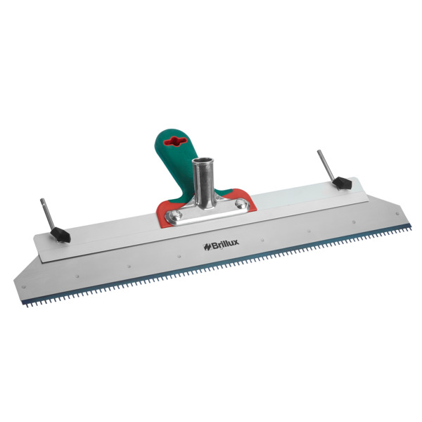Rakla przeznaczona do równomiernego rozprowadzania na dużych powierzchniach samopoziomujących mas wyrównujących do podłóg. Wyposażona w ostrze z hartowanej, nierdzewnej stali sprężynowej z dospawaną listwą zaciskową, dwa regulowane stalowe elementy mocujące umożliwiające płynną regulację wysokości oraz listwę zaciskową o szerokości 56 cm, przystosowaną do mocowania dwóch 28-centymetrowych podwójnych listew zębatych (akcesoria dodatkowe).