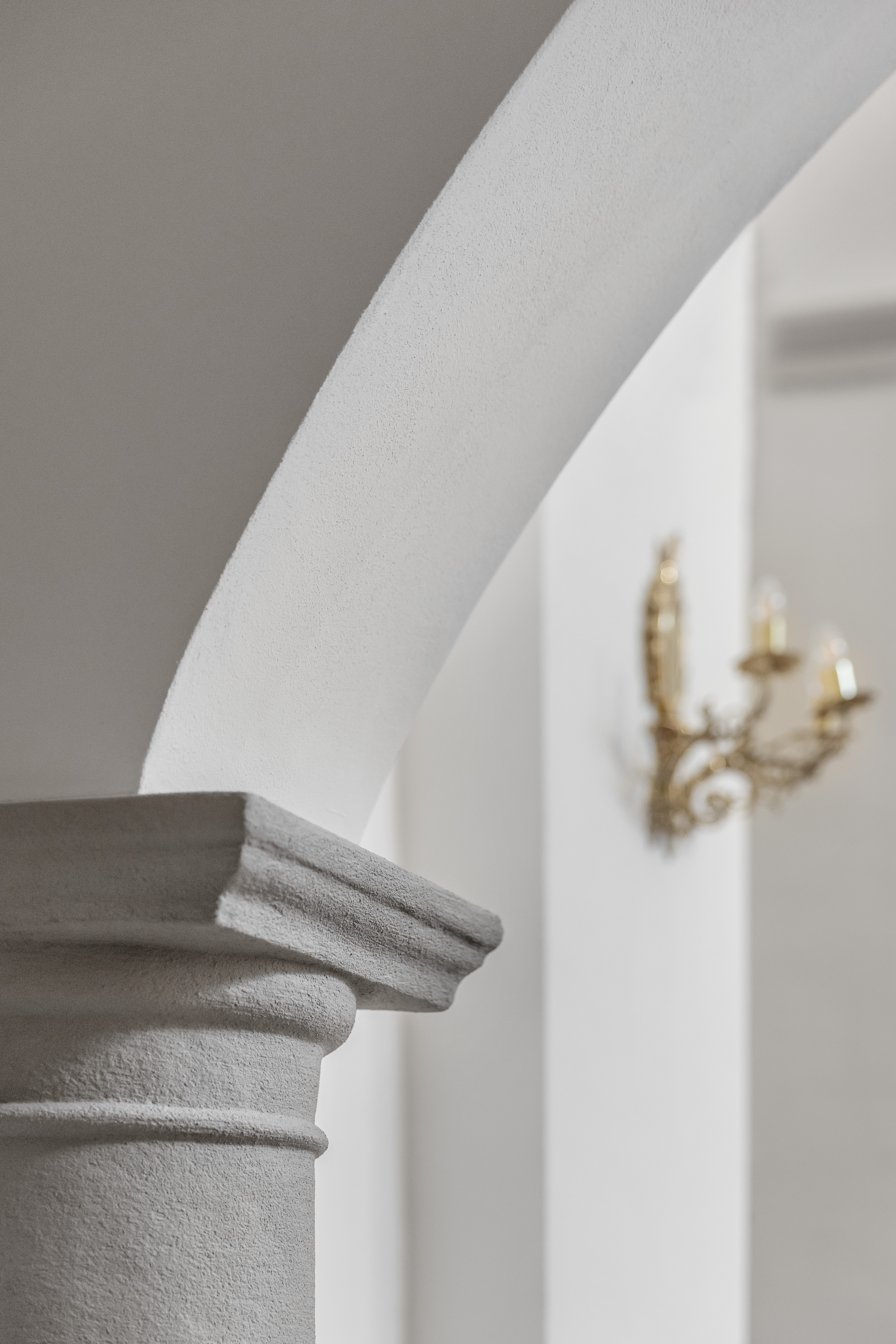 Silikatowa ochrona o wysokiej paroprzepuszczalności</Silikatowa farba do wnętrz Profisil 1906 o wysokiej sile krycia doskonale sprawdza się przy wykonywaniu wysokiej jakości powłok na ścianach i sufitach – czego najlepszym przykładem jest ten projekt. Powłoka jest odporna na wilgoć, a jednocześnie paroprzepuszczalna i aktywnie zapobiega rozwojowi pleśni. Ma to szczególne znaczenie w obiektach o dużym natężeniu ruchu, takich jak kościoły. Zarówno Fondosil 1903, jak i Profisil 1906 są całkowicie wolne od konserwantów, rozpuszczalników oraz plastyfikatorów, co dodatkowo podnosi bezpieczeństwo ich stosowania.